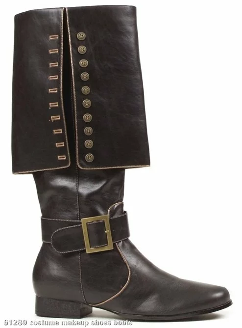 Whether you’re going to walk the plank or sail the High Seas, your pirate costume needs some pirate boots! The Captain Black Adult Boots include a pair of black 1″ heel Pirate boots with a buckle and a large cuff with gold detailing. Also included is a removable red sash.