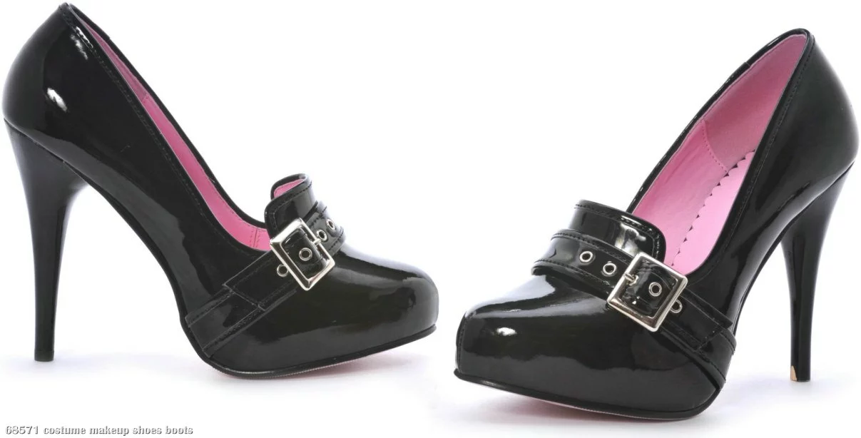 Still can’t decide what you want to be for Halloween this year? Grab these shoes and they’ll glam up any look you end up with! Perfect for any day or any costume, these shoes feature 4.5″ stiletto heel with a black rounded toe and matching silver buckle.