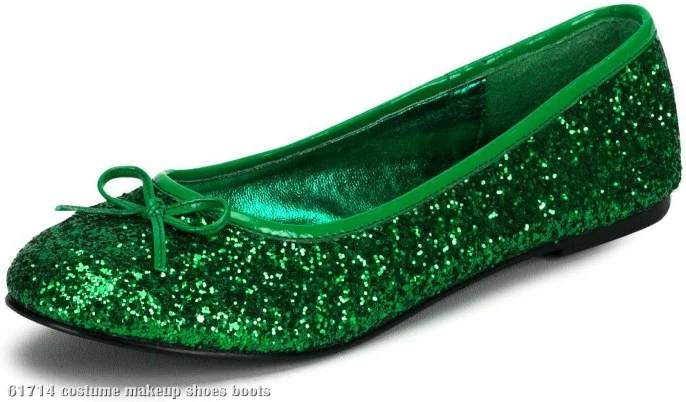 Add a little sparkle to your holiday festivities with these glitzy and glamorous green shoes. A dainty bow and matching trim top off the look of these fabulous flats.