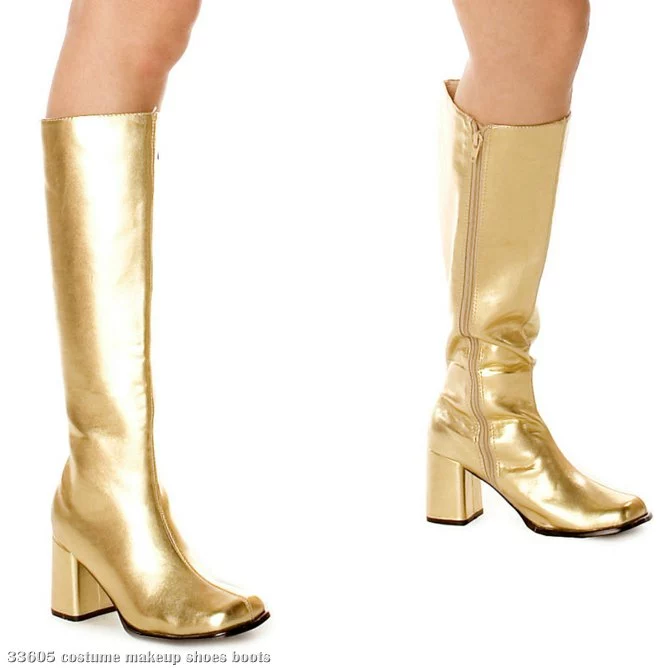 The Gold “GoGo” Boots feature a 3″ heel and a side zipper. Whether you are a disco-lovin’ diva shakin’ your groove thang on the dance floor, or a boxing babe looking like a knockout, these boots add a fun finishing touch!