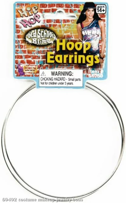 Add some hip hop flava to any dope look with these earrings! Perfect for completing your 80s or old school hip hop costume. Includes one pair of silver-tone, oversized hoop earrings for pierced ears.