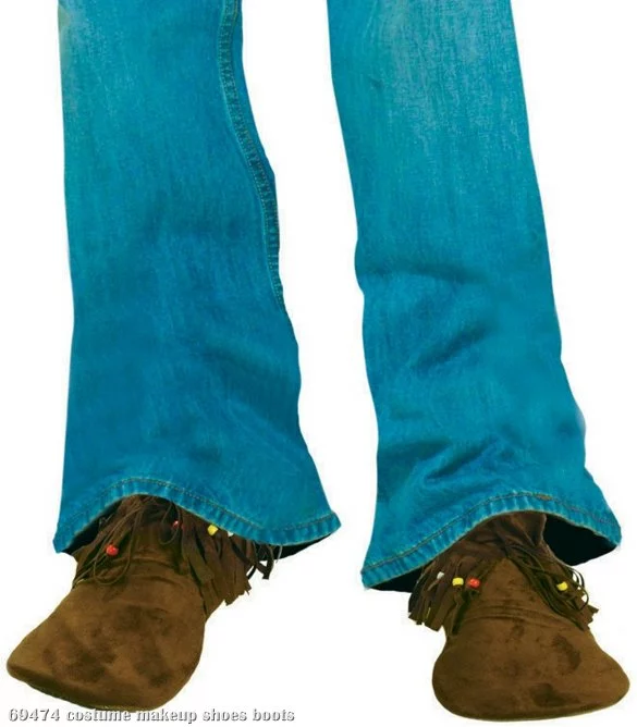 Give peace a chance in these comfy moccasins. Perfect for finishing off any hippie or American Indian costume! Includes one pair of faux-leather moccasins with fringed trim and beaded accents.