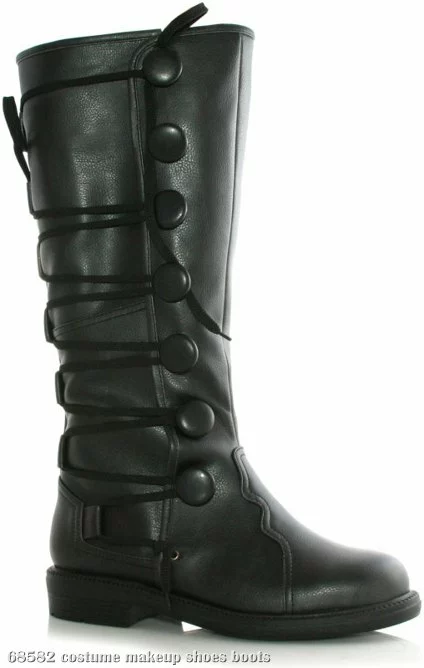 Venture to the Renaissance with these royal boots. The Ren Adult Boots are knee-length black boots with a 1″ sole and black buttons up the side that are attached with wrap-around string. From Robin Hood to Renaissance Man, you’ll be set for your historical costume!