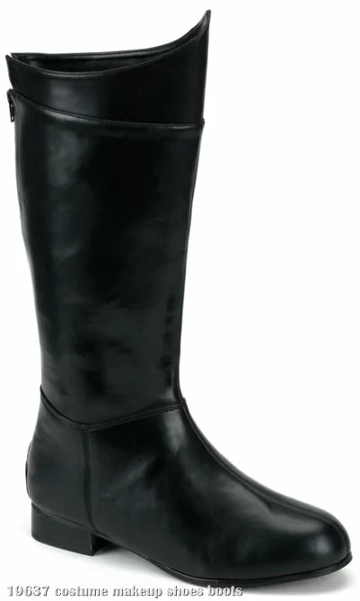 Includes: A pair of black super hero boots with back zipper, black sole with heel (approximately 1″). Available in adult men’s sizes Small (8-9), Medium (10-11), Large (12-13), and X-Large (14).
