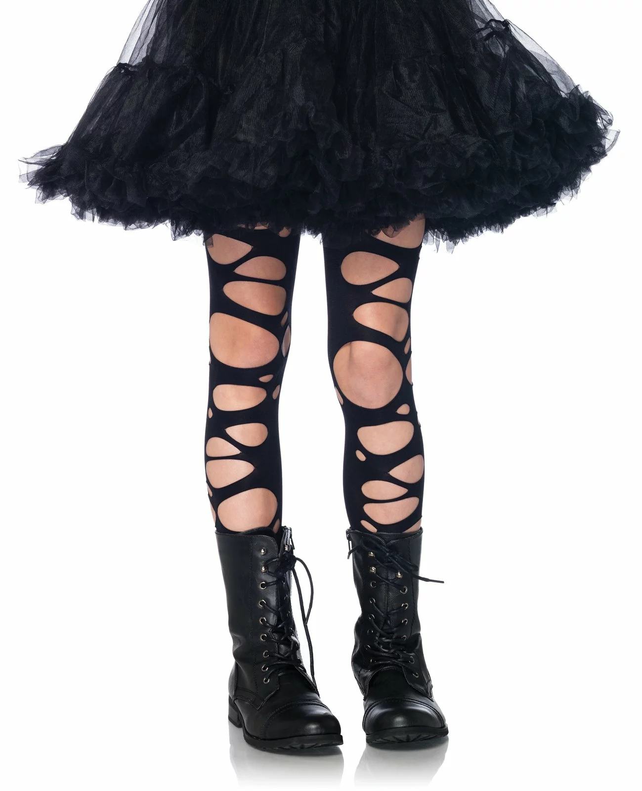 Add a little gothic flare to your cute kids look with these tights this Halloween! This product includes one pair of tattered child tights.