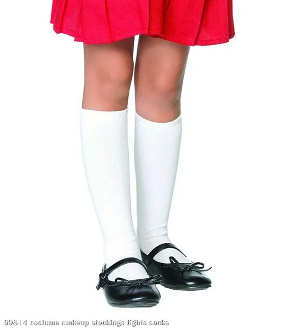 Top off the look of your charming cheerleader or adorable all-star with these white knee socks! Includes one pair of nylon socks that go up to the knees.